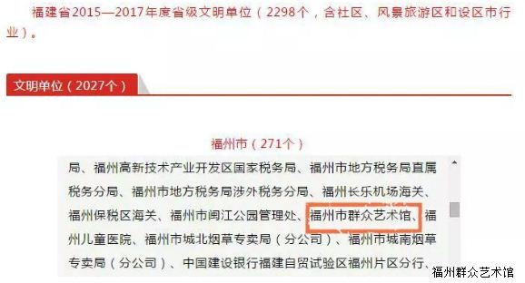 【喜讯】福州市群众艺术馆蝉联2015-2017年度省级“文明单位”荣誉称号