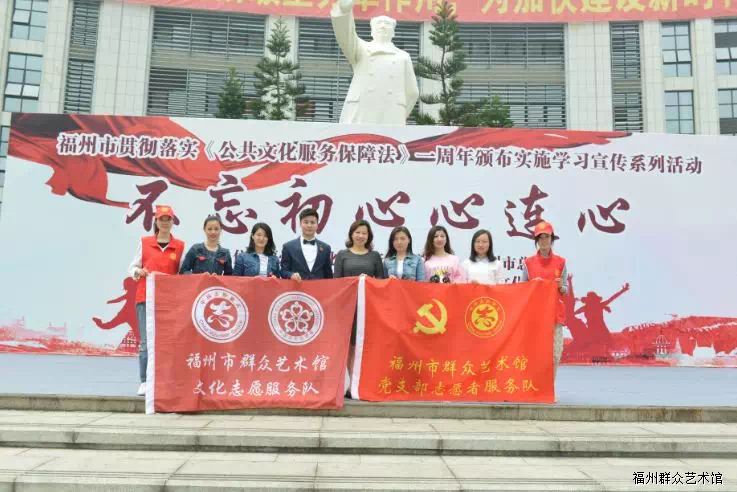 4月29日上午,正值五一国际劳动节即将来临之际,我馆在福州市工人文化宫广场举办了庆“五一”广场文化惠民演出暨“不忘初心心连心”——福州市贯彻落实《公共文化服务保障法》一周年颁布实施学习宣传系列活动,以精彩的歌舞表演为市民朋友送上节日的祝福,同时以多样的形式宣传保障法的精神内容。本次活动由福州市文化广电新闻出版局、福州市总工会主办,福州市群众艺术馆、福州市工人文化宫承办。
