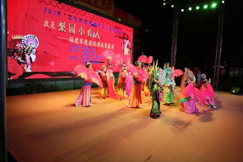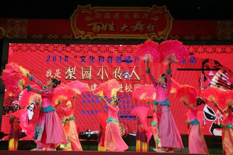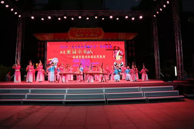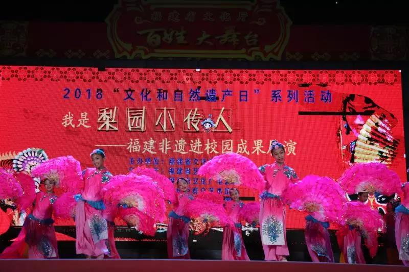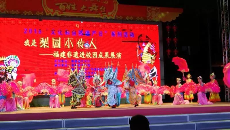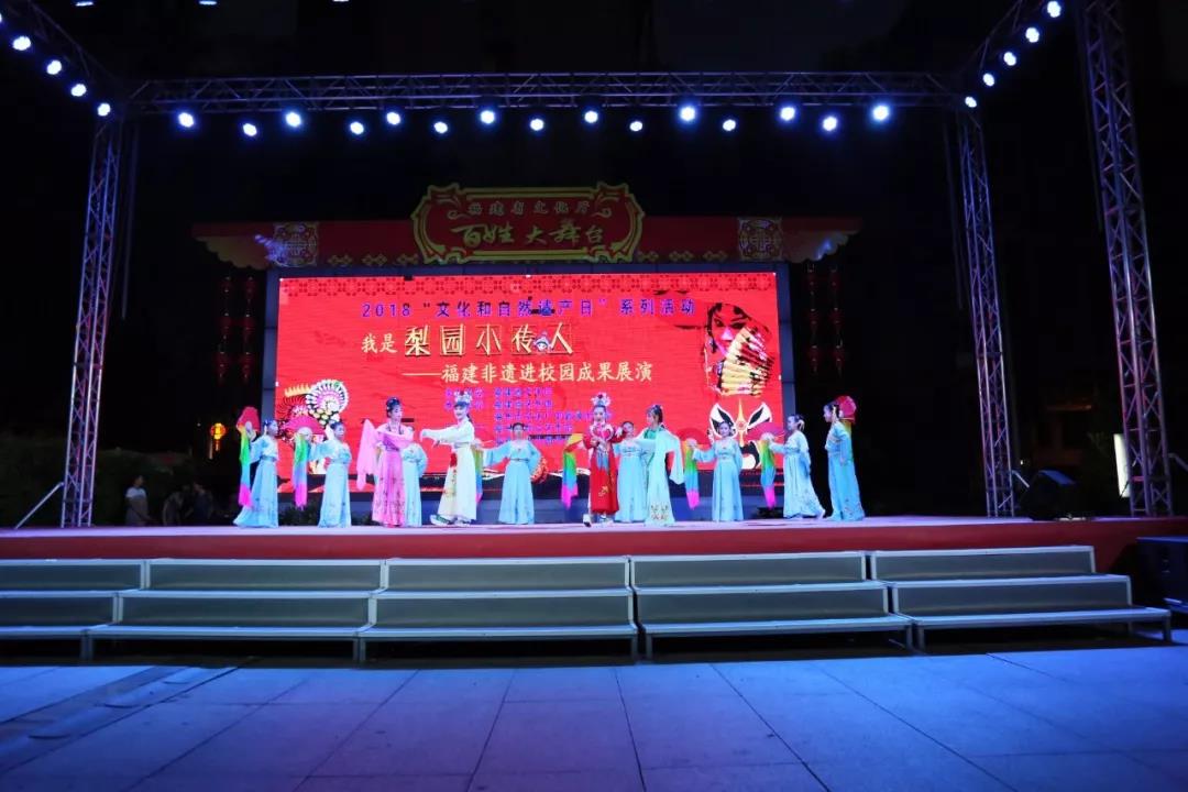 6月9日晚上,由福建省文化厅主办,福建省艺术馆、福州市文化广电新闻出版局承办,福州市群众艺术馆协办,福州市各区(县)共同参与的“多彩非遗 美好生活——梨园小传人·福建非遗进校园成果展演活动”在省少儿图书馆广场举行。