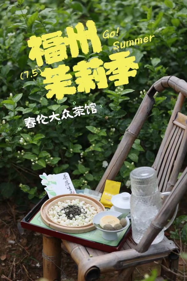春伦大众茶馆将福州传统茉莉花茶窨制工艺与福州市花茉莉二者元素相互融合,打造集互动打卡、非遗文化和避暑理念的空间,助力全民饮茶氛围更进一步。