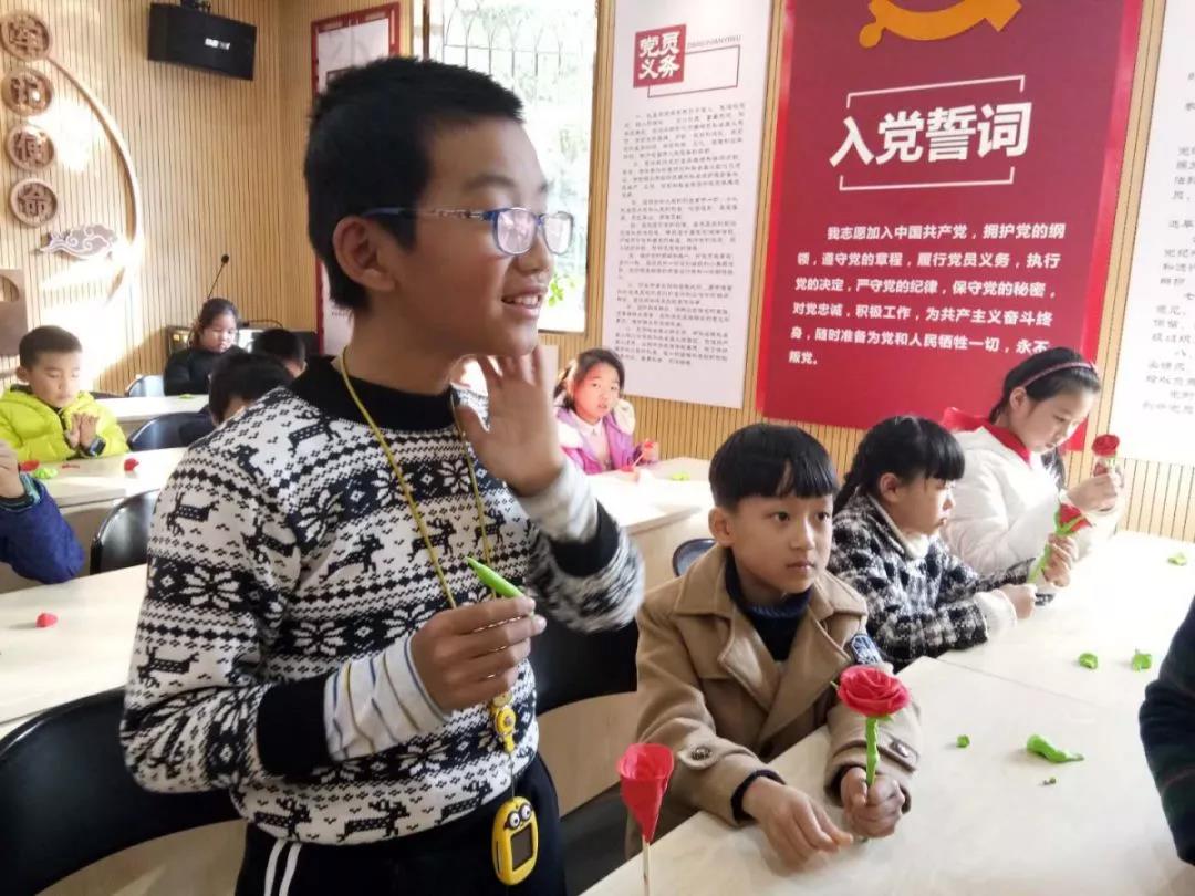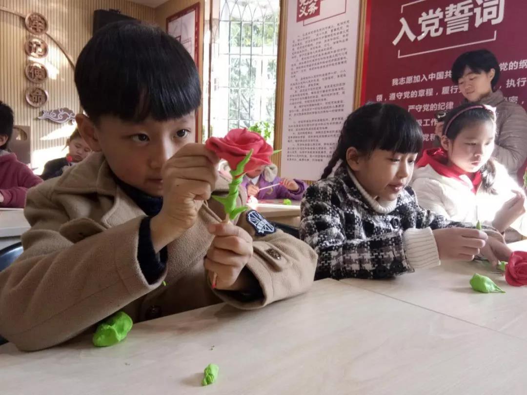 活动开始,老师向学生分发了制作“捏面人”的材料,今天学习的是制作玫瑰花。老师取出一点红色的原料,放在木棍上,捏成一个小尖尖,也就是花蕊,然后再取出红色的原料做成花瓣,花瓣要求不能太厚,做好后再一瓣瓣贴上去。花做好后是做叶子,老师耐心的向学生演示如何制作。在老师的指导下,学生做的小花瓣栩栩如生,一朵朵玫瑰花孕育而生。
