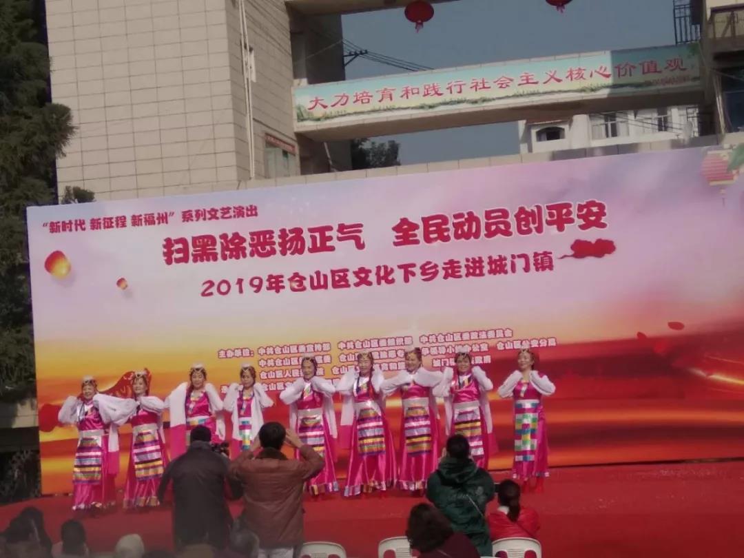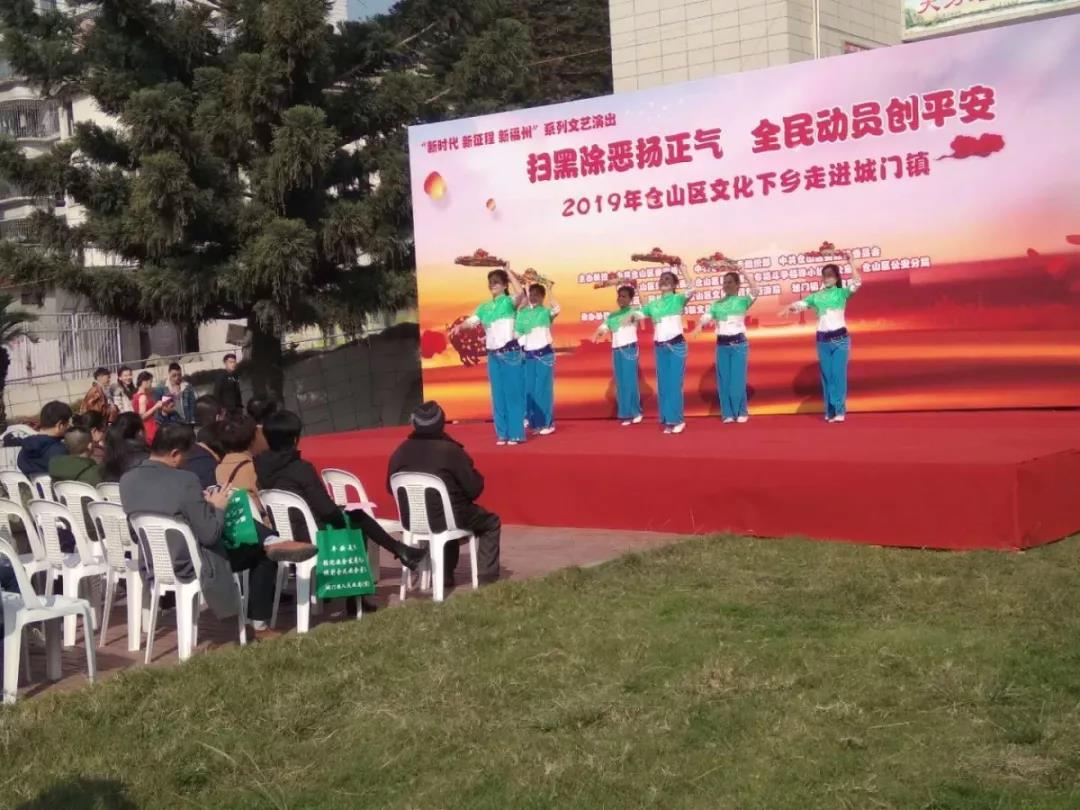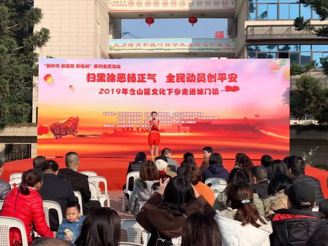 1月23日上午,由中共仓山区委宣传部、中共仓山区委组织部、中共仓山区委政法委员会、中共仓山区纪委监委、仓山区扫黑除恶专项斗争领导小组办公室、仓山区公安分局、仓山区人民检察院、仓山区文化体育和旅游局、城门镇人民政府主办,仓山区文化馆、城门镇综合文化服务中心承办的“文化下乡进基层 文化惠民暖人心”文艺演出暨2019年仓山区文化下乡活动走进了城门镇,为辖区群众送来丰富的文化大餐和暖心的新春祝福。